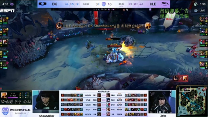 第一局:小吕布韦鲁斯虐泉五杀完结宙斯雷克塞挖穿DKHLE赢首局