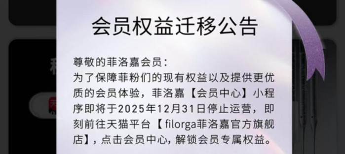 红星老本局珍贵到,客岁12月,菲洛盛会员中心小智商告示于12月31日住手运营。彼时,该公告曾指导会员前去天猫官方旗舰店移动会员权利。不到1个月的时分,菲洛嘉天猫官方旗舰店也告示闭店。