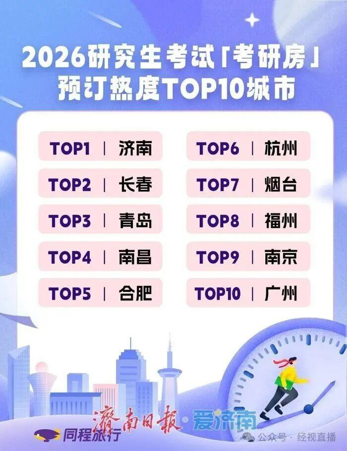 法例当日上昼10时,某平台发布的数据显现,“考研订房”板块的拜访量大幅增长,预订热度较前一日同时增长向上10倍;济南成为寰宇“考研房”预订热度最高的城市,长春、青岛、南昌紧随后来。