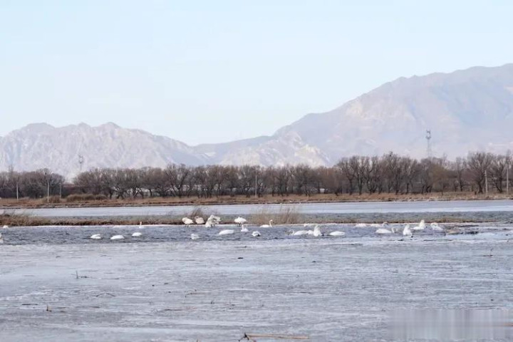 还有40多只天鹅眷顾着这片水域,迟迟莫得南飞。它们是如斯酷好这里,在半冻半融的水面上,或欣然浮游,或互相依偎,或钻水觅食,清白的身影与澄莹的水、邋遢的山逸态横生,组成了一幅独属于这片湿地的冬日重视画卷。