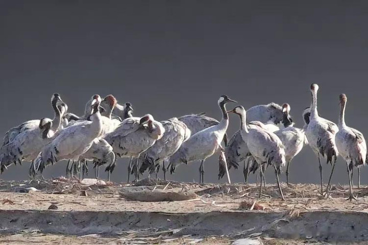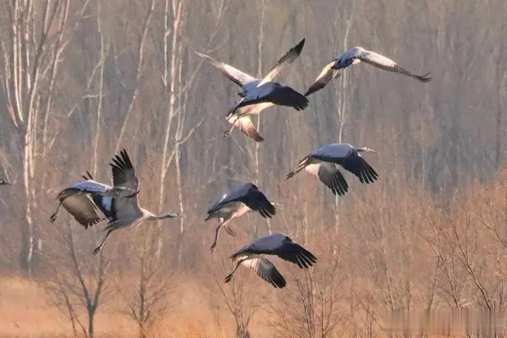 灰鹤成了这里的主角,它们要在这里越冬。它们或折腰梳理羽毛,或抬头远望远方,在湿地的地皮上,组成了一幅充满盼愿的越冬图景,仿佛要将这里算作冬日里谢却的家园。